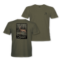 The BUX Scrape T-shirt features a big buck hitting a scrape, on a classic olive T-shirt. Perfect for those who love hunting over scrapes!