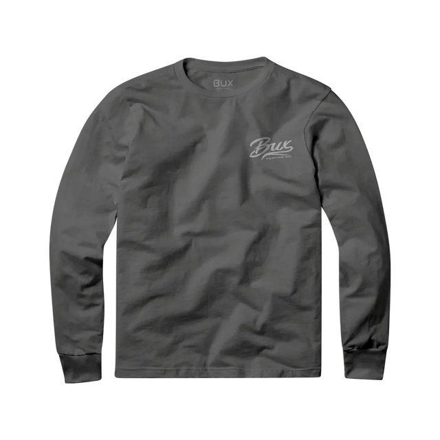 The Bux Logo Crew Neck is the ultimate in the field or out around town Bux piece, Featuring a subtle Bux script logo on solid grey crew neck!