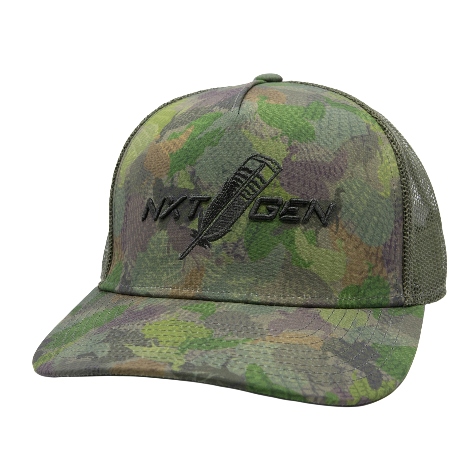 This custom 5-panel mesh back hat displays our BUX EXCLUSIVE NXT GEN Turkey Camo Pattern! Join the movement and be one of the first to own this timeless new camo pattern!