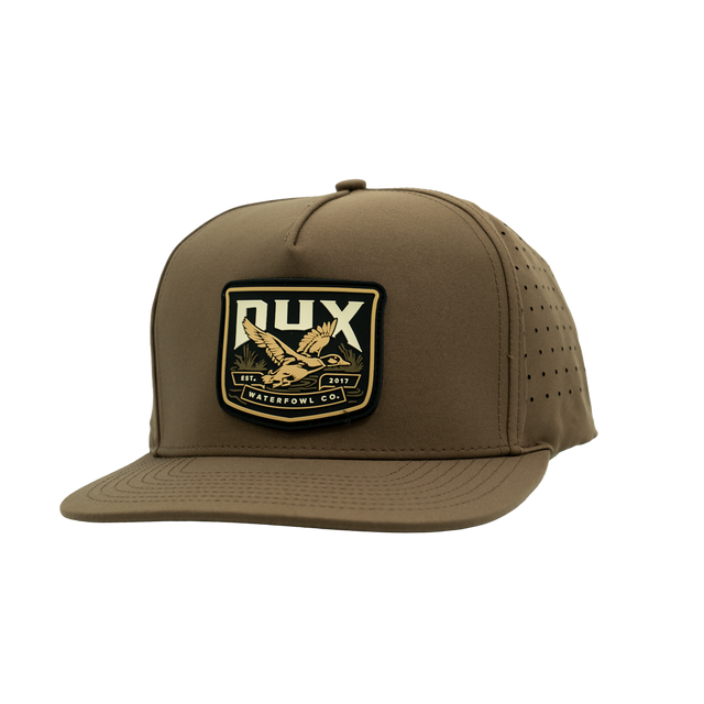 The DUX Mallard Performance Patch Hat features a solid brown colorway, in our full performance fabric construction. Light weight, Durable, and water resistant This hat is a Must have for all Duck hunters!