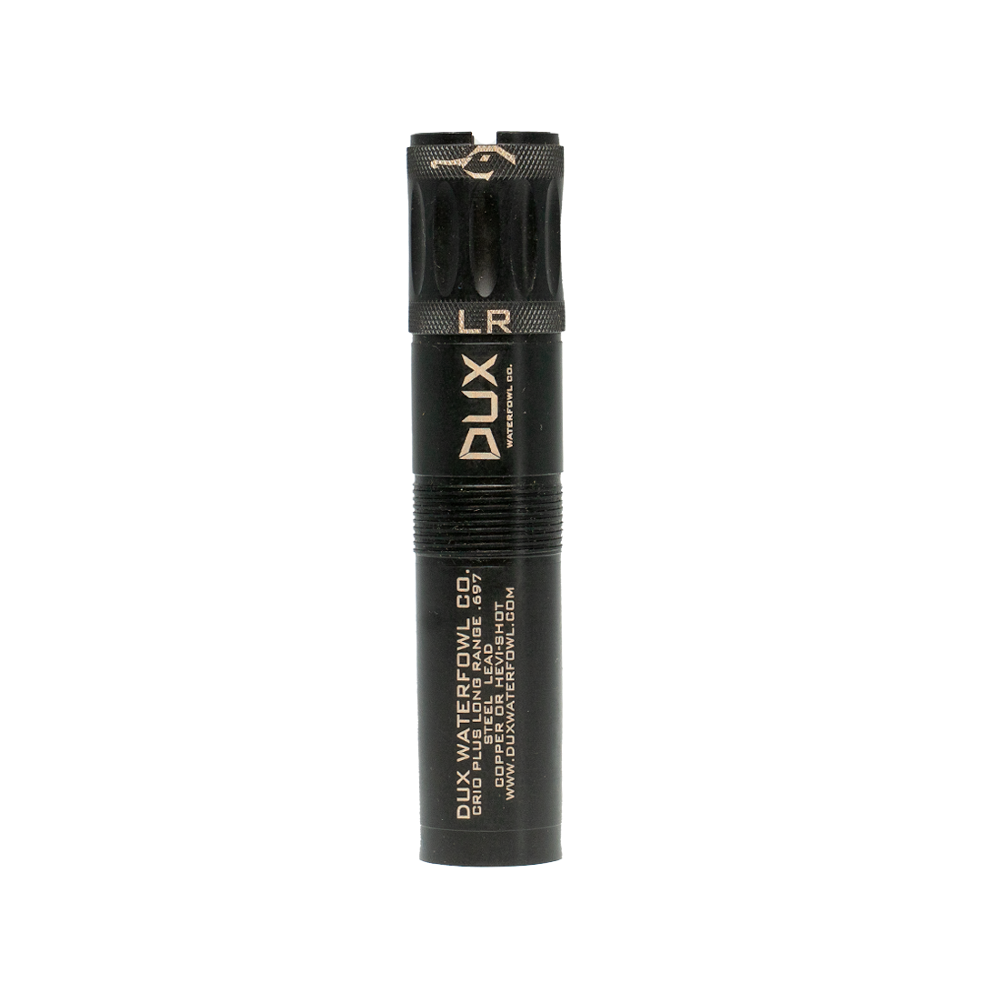 Back in stock for this fall, the DUX NXT GEN Series Long Range choke tube features a series of three graduated rings in the taper section of the tube that allows a more gradual transition from the shotgun bore to the final constriction. This design offers reduced pellet deformation, fewer flyers, and more dense patterns. Precision-machined from heat-treated 17-4 stainless steel, when a tighter pattern is needed, the DUX NXT GEN Series Long Range Choke tube will get the job done!