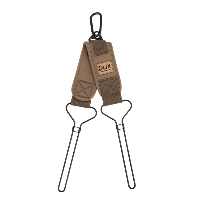 Our NXT GEN game tote features a padded neoprene strap for ultimate comfort as well as powder-coated metal hangers with clips to ensure your harvest stays secure during transport.