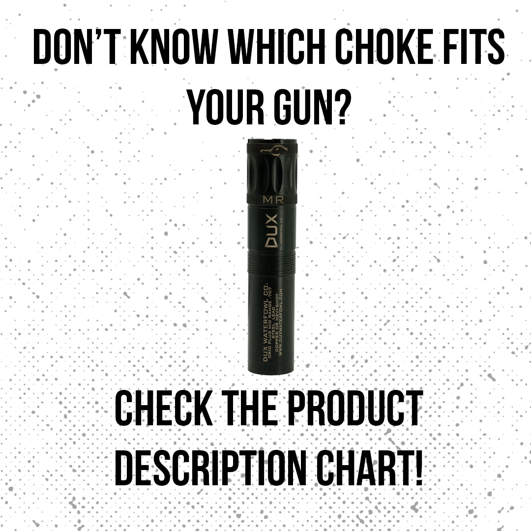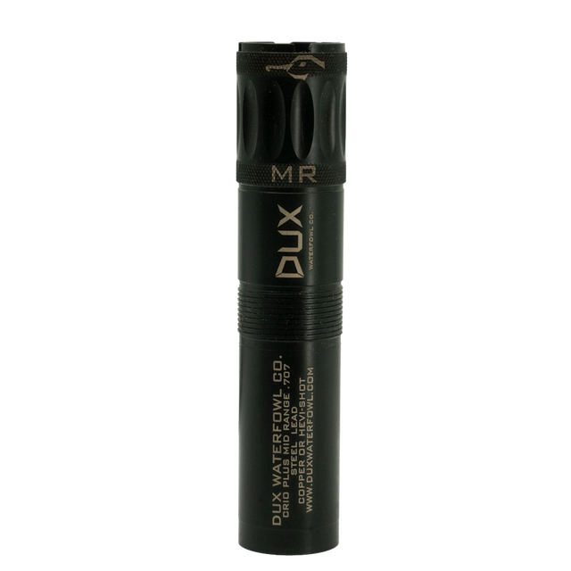 The DUX NXT GEN Series Mid Range choke tube is here, featuring a matte black coating and gold text. This choke tube is perfect for early season or those who prefer a wider pattern! Check the chart to ensure which model fits your gun!