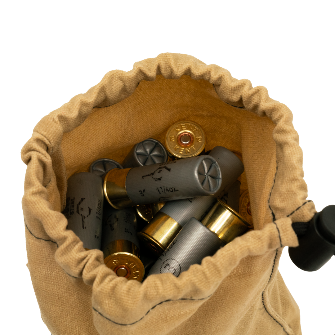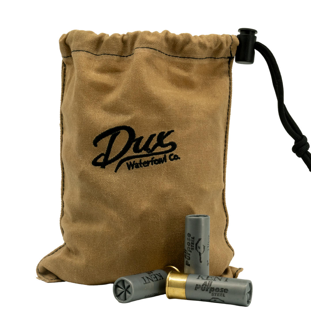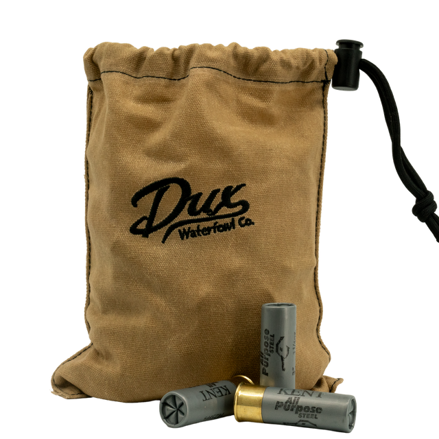 The DUX Wax Canvas Shell Bag is perfect for storing 2 boxes of shells, and keeping them dry and together in your blind bag. The Wax Canvas Shell bags are made of high quality canvas and waxed to beed off water.