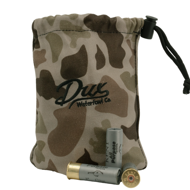 The DUX Camo Wax Canvas Shell Bag is the ultimate shell storage pouch, featuring a wax canvas construction to keep water out, a top closure rope and DUX Script Logo!