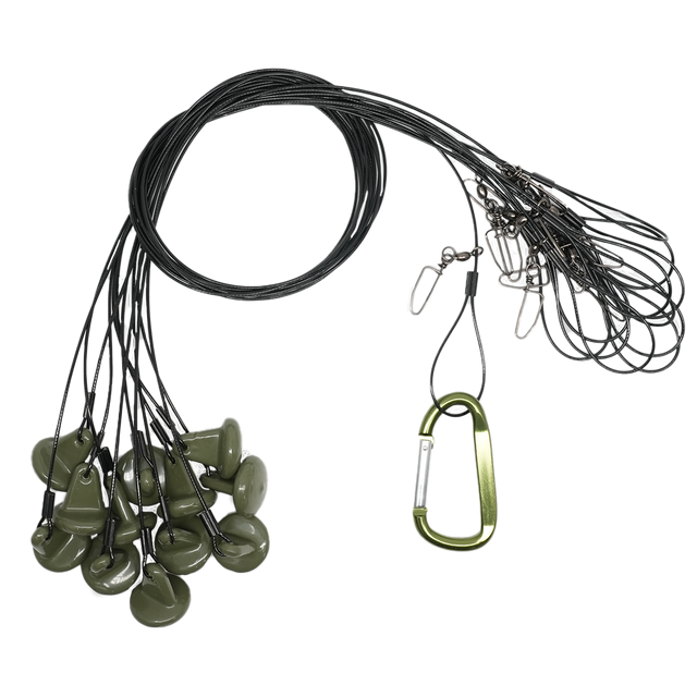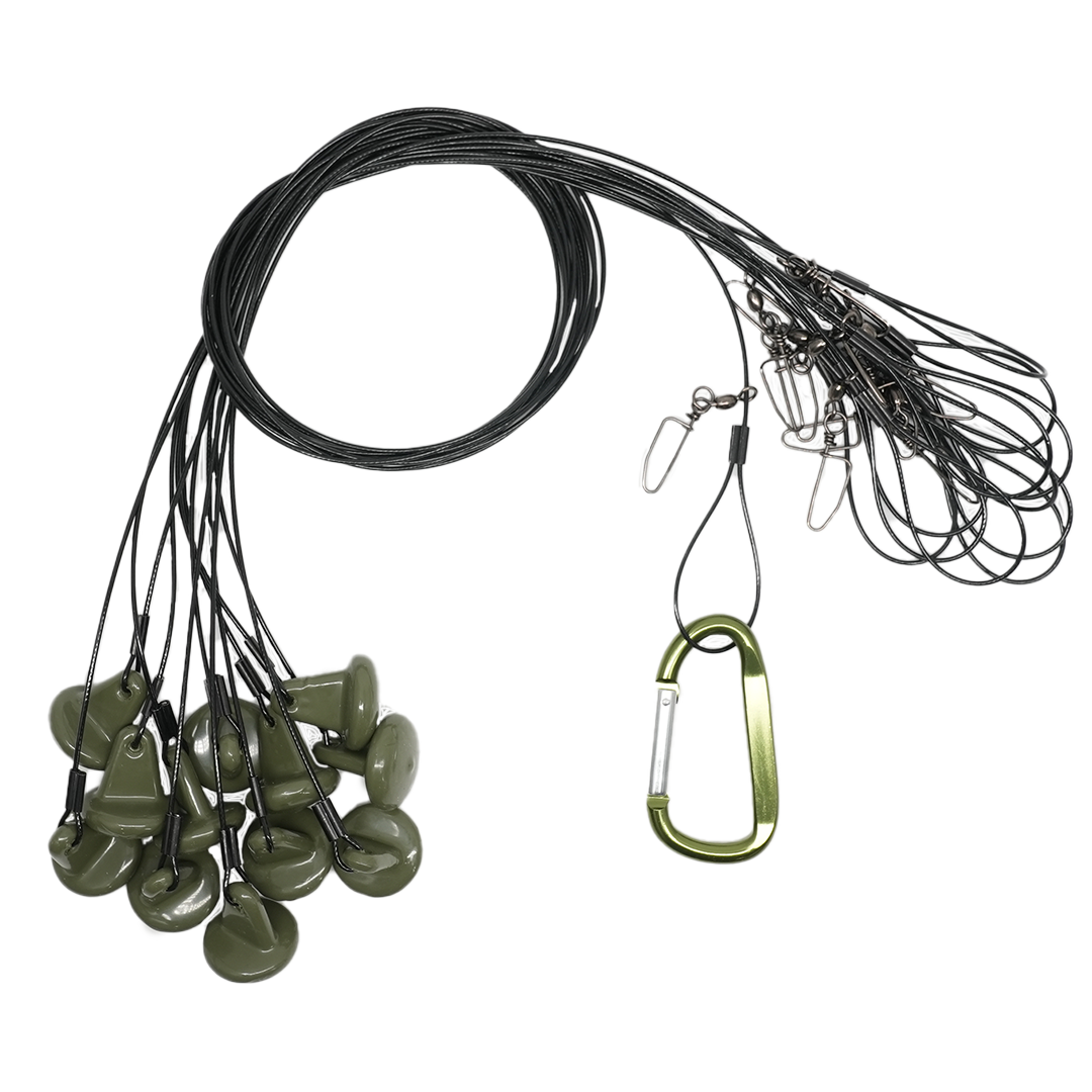 The Brand New DUX NXT GEN Texas Rigs are here! This rigs are 40' long and come with Green Rubber Coated 4 oz. weights. They include over sized loops for picking up, stainless steel hardware, Coated Steel cables for no tangles and knots, and an over sized carabiner for storage! (Rigs come in a 12 packs!)