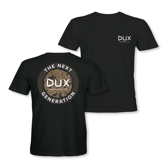 The Dux Camo Badge Logo T-shirt is a classic shirt for any situation, Featuring a simple camo badge design on a Black T-shirt.