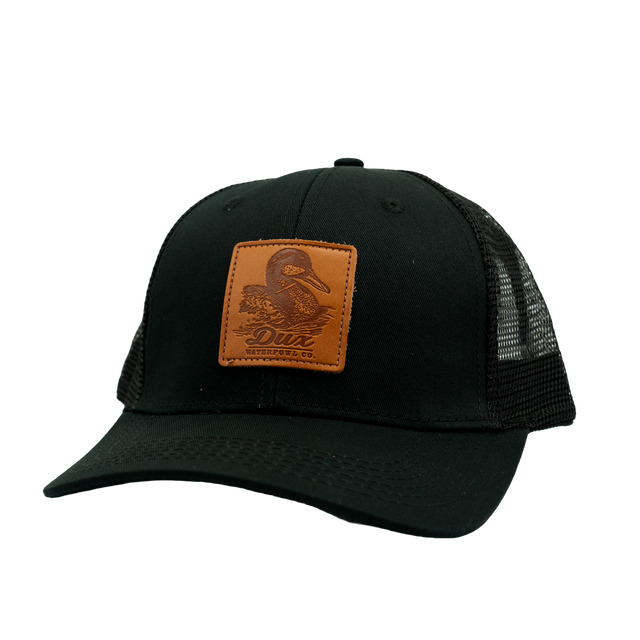 The DUX Leather Patch Hat is the perfect hat to wear around duck camp or out on the town! Featuring a Leather patch with a swimming mallard this hat will become a go to in your rotation!