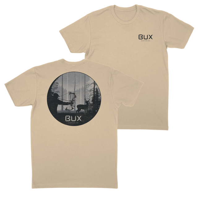 The brand new BUX full draw t-shirt is essential for bow hunters, a perfect shirt for setting trail cams, filling feeder, or hanging out at deer camp!